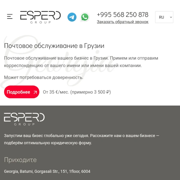Я хотела бы поделиться своим опытом работы с Espero Group и выразить искреннюю благодарность за их непревзойденную помощь в регистрации моего бизнеса. С самого начала нашего сотрудничества я была приятно удивлена профессионализмом и дружелюбием сотрудников Espero Group. Они создали комфортную и доверительную атмосферу, в которой я могла задавать все свои вопросы и получать исчерпывающие ответы.